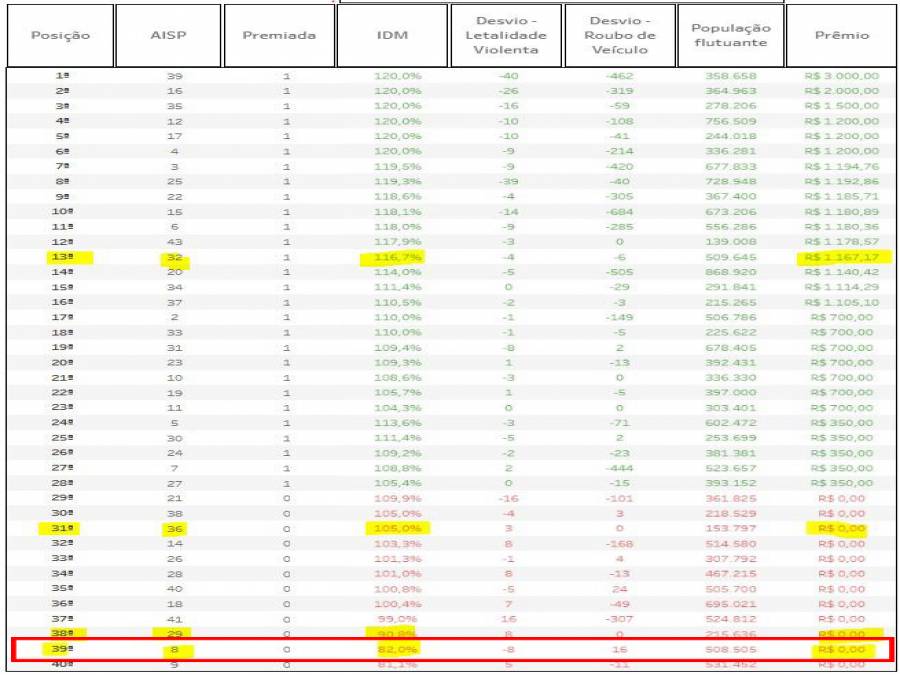 O quadro se agrava quando se observa o desempenho do 8° Batalhão da Polícia Militar (8° BPM), sediado em Campos, que registra um dos piores desempenhos de sua história, ficando penúltimo entre os 40 batalhões do Estado, segundo os mesmos indicadores do ISP. O batalhão já ultrapassou todas as metas negativas estipuladas para o período, mesmo antes do encerramento do semestre.